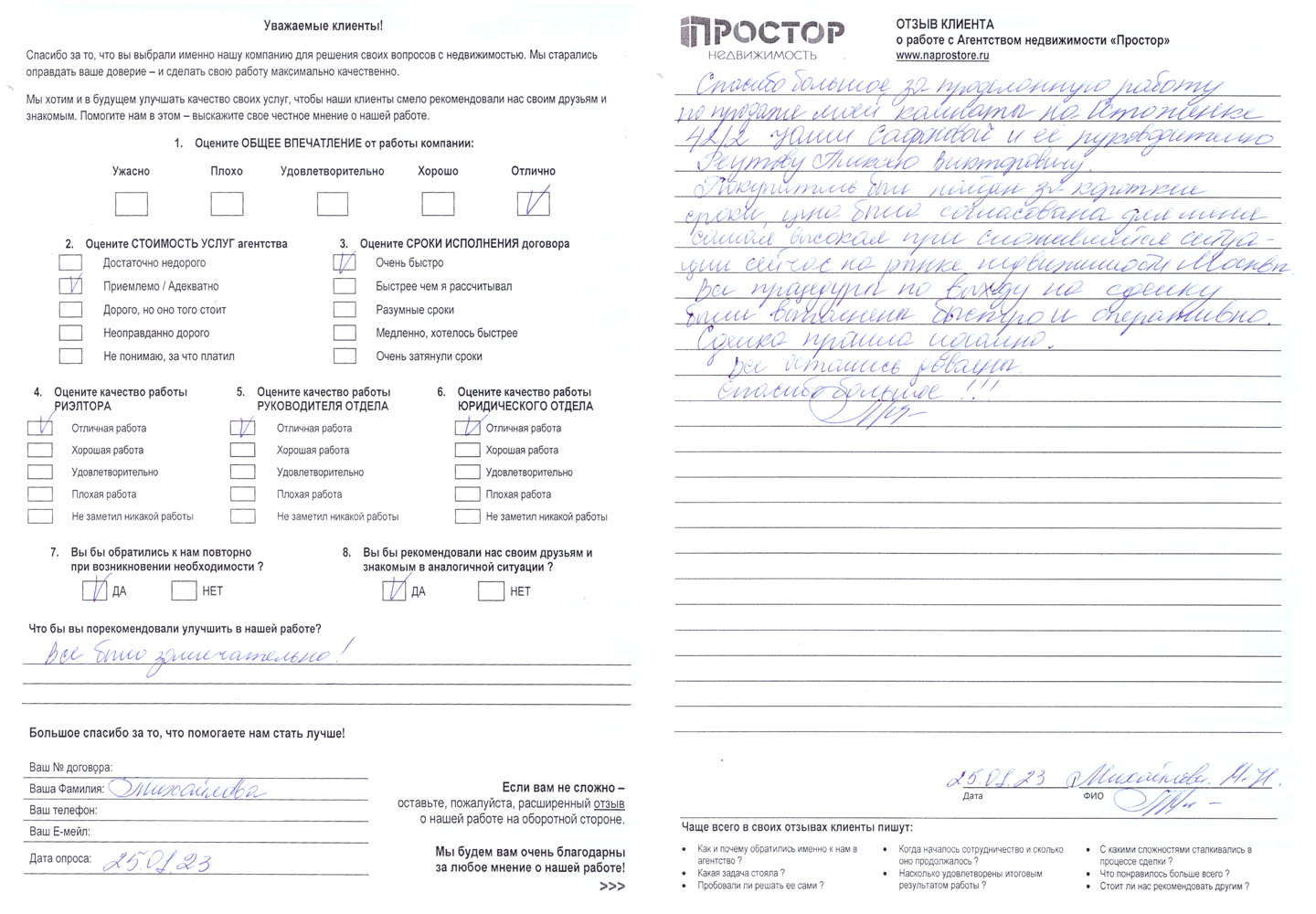 Михеева Э. Р., покупательСпасибо большое за проделанную работу по продаже моей комнаты на Остоженке 42/2 Юлии Сафоновой и её руководителю Реутову Алексею Викторовичу. Покупатель был найден за короткие сроки, цена была согласована для меня самая высокая при сложившейся ситуации сейчас на рынке недвижимости...