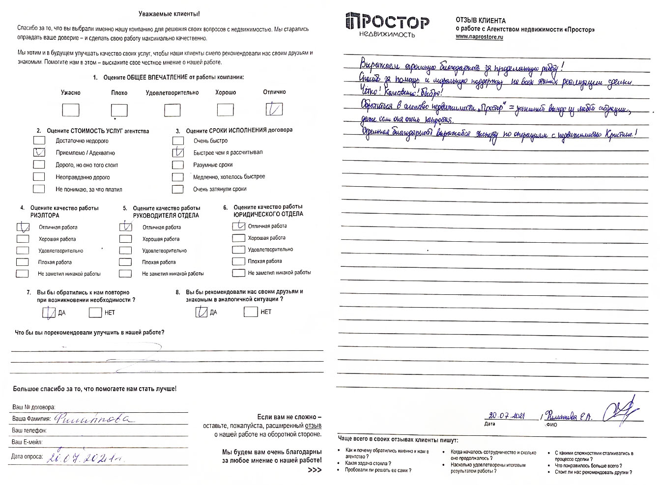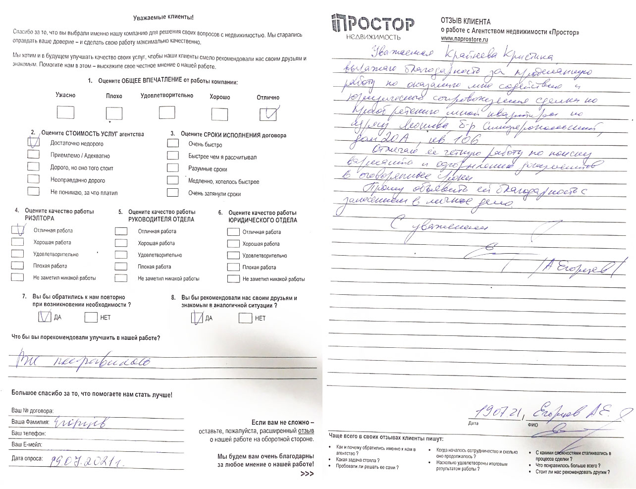 Выражаем огромную благодарность за проведенную работу! Спасибо за помощь и моральную поддержку на всех этапах реализации сделки. Четко! Качественно! Быстро! Обратиться в агентство недвижимости «Простор» = успешный выход из любой ситуации, даже если она очень непростая. Отдельная благодарность выражается эксперту...
