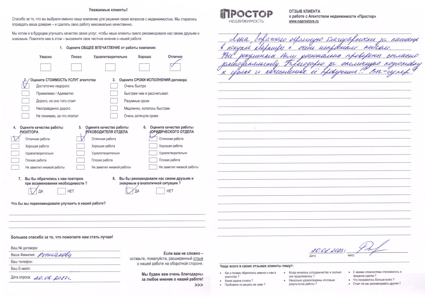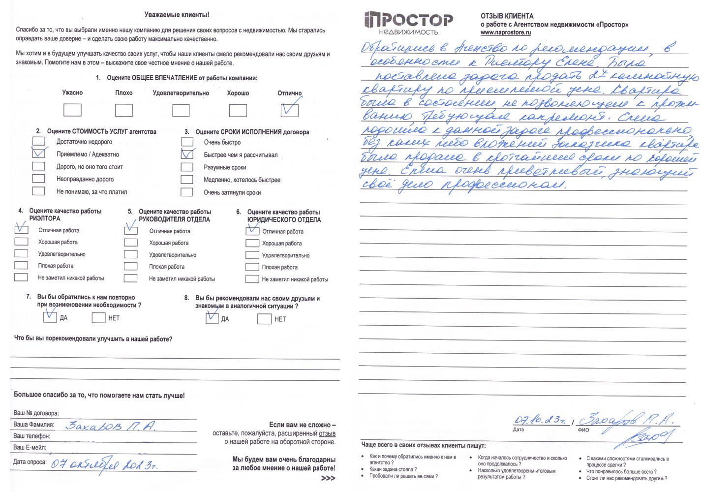 Обратились в агентство по рекомендации. Была поставлена задача продать 2-комнатную квартиру по приемлемой цене. Елена подошла к данной задаче профессионально. Без каких-либо вложений заказчика квартира была продана в кратчайшие сроки по хорошей цене.