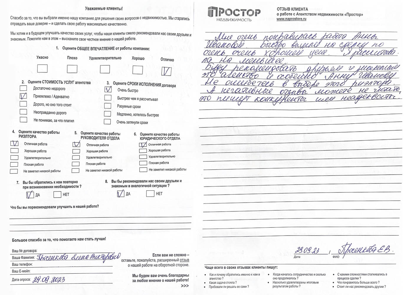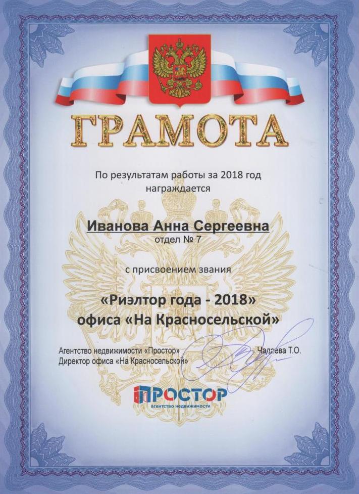 Мне очень понравилась работа Анны Ивановой. Быстро вышли на сделку по очень, очень хорошей цене. Я рассчитывала на меньшее. Буду рекомендовать друзьям и знакомым это агентство и особенно Анну Иванову. Не ошибетесь в выборе этого риэлтора. А негативные отзывы можете...