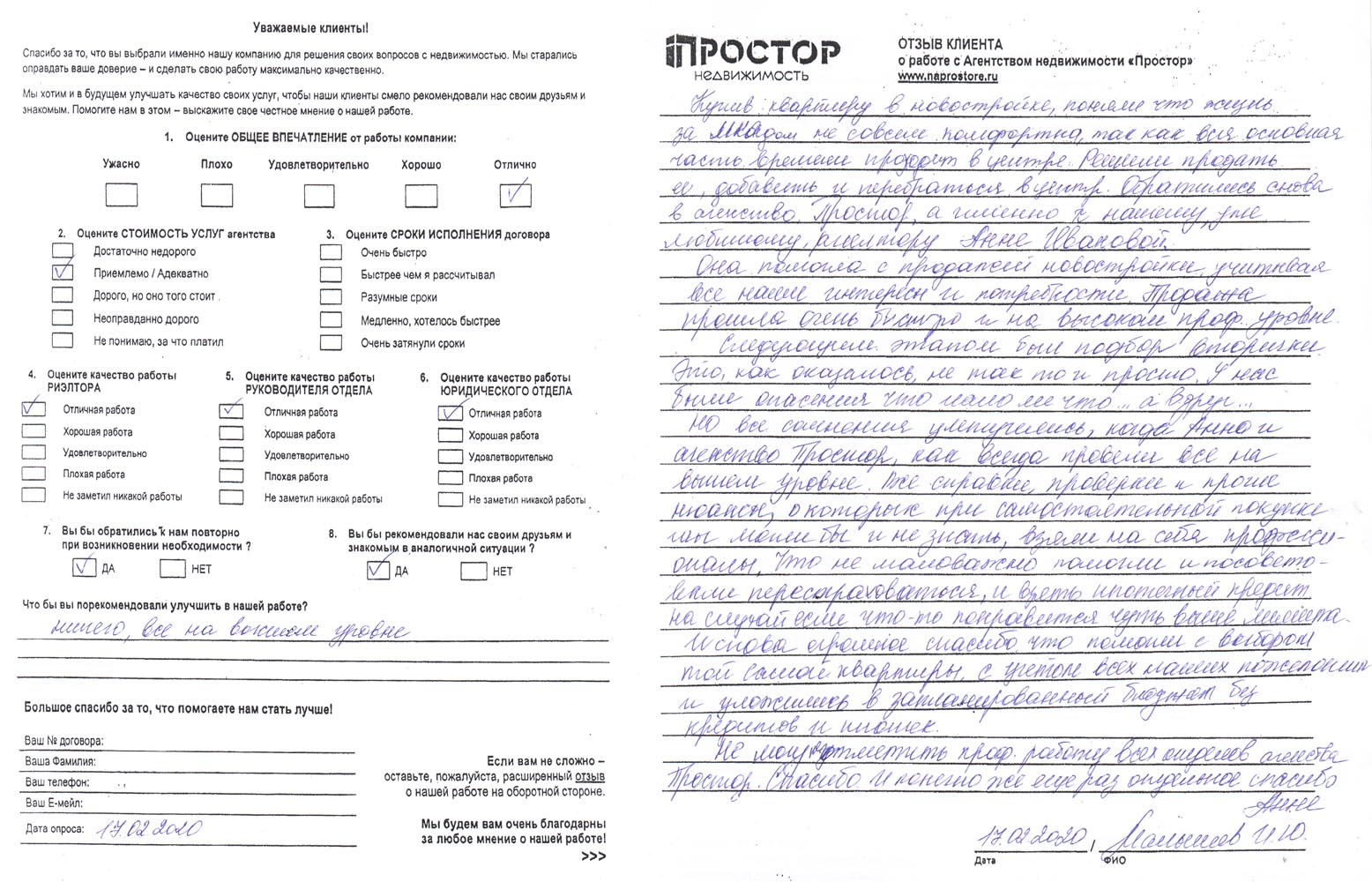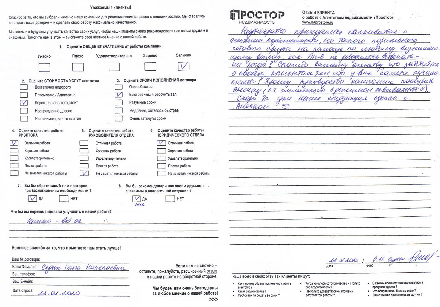 Не могу не отметить проф. работу всех отделов агентства Простор. Спасибо. И конечно же еще раз отдельное спасибо Анне!