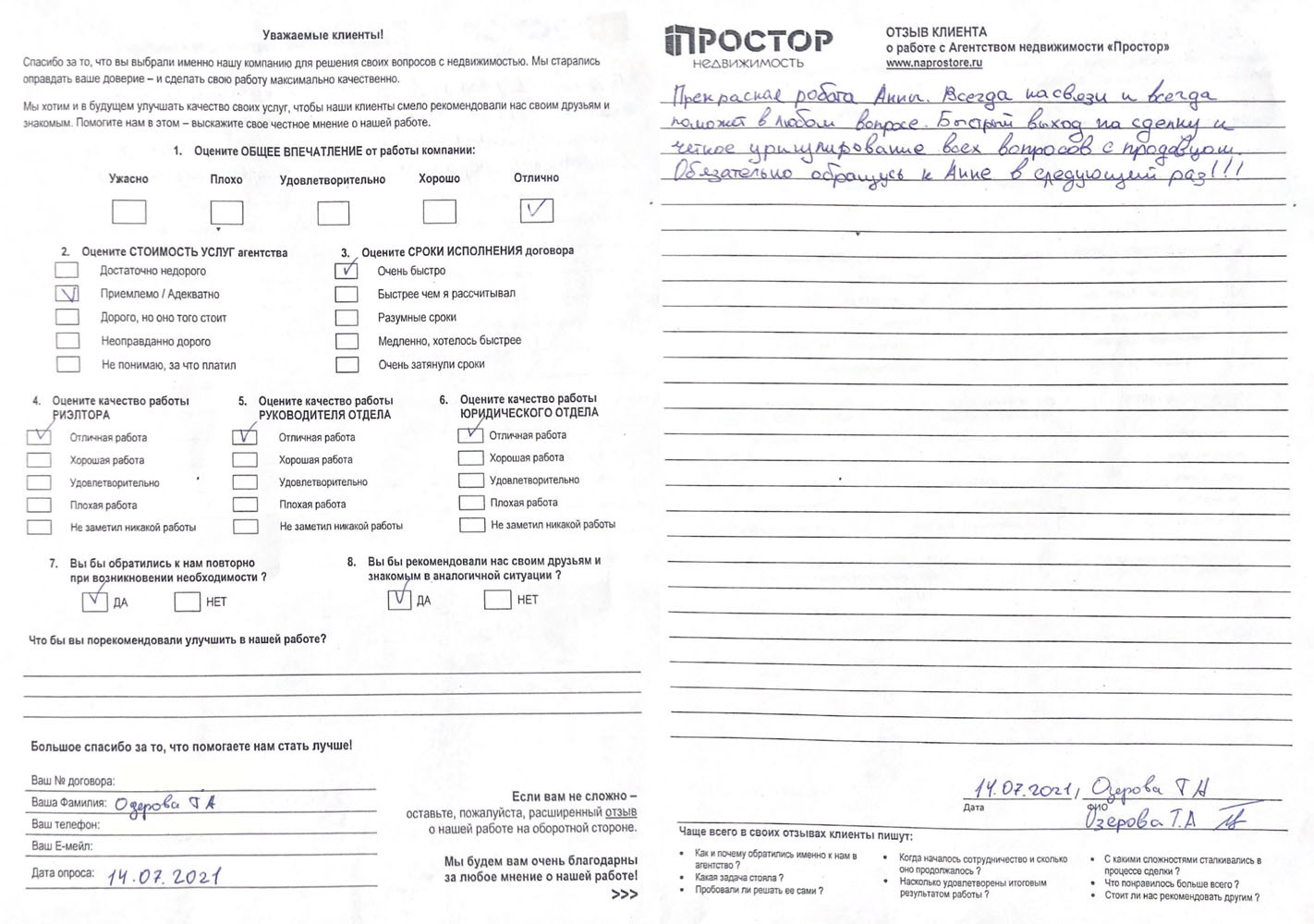 14.07.2021 Офис Павелецкий Иванова Анна