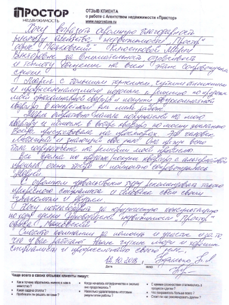 Благодарю за быструю и качественную работу риэлтора Маркопольскую Е.В., тактична, вежлива и грамотная в своей работе