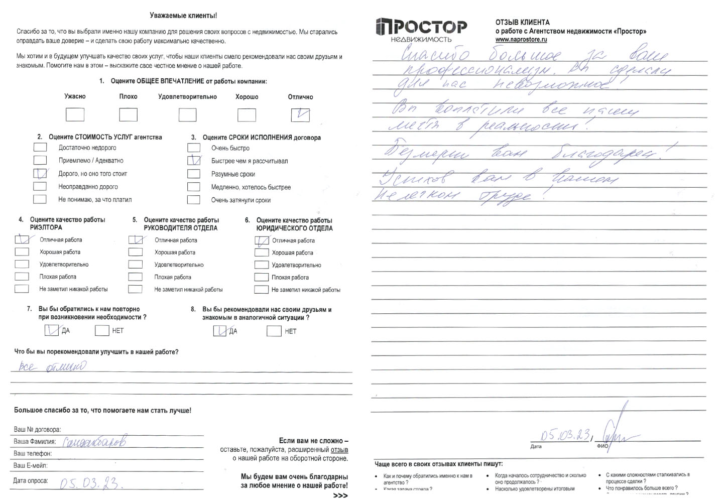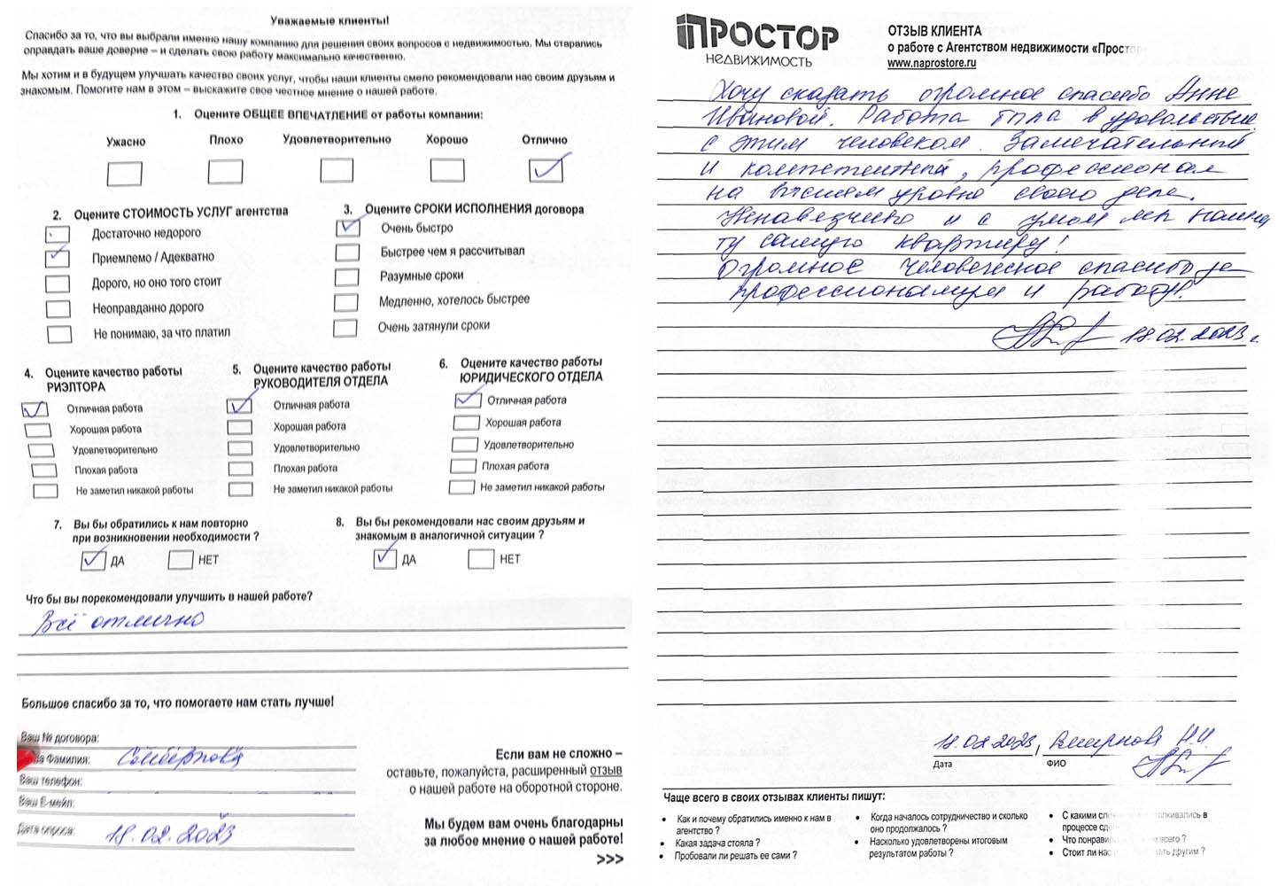 Отмечаю качественную, высокопрофессиональную работу агентства, в т. ч. сотрудника агентства – Осипова А.