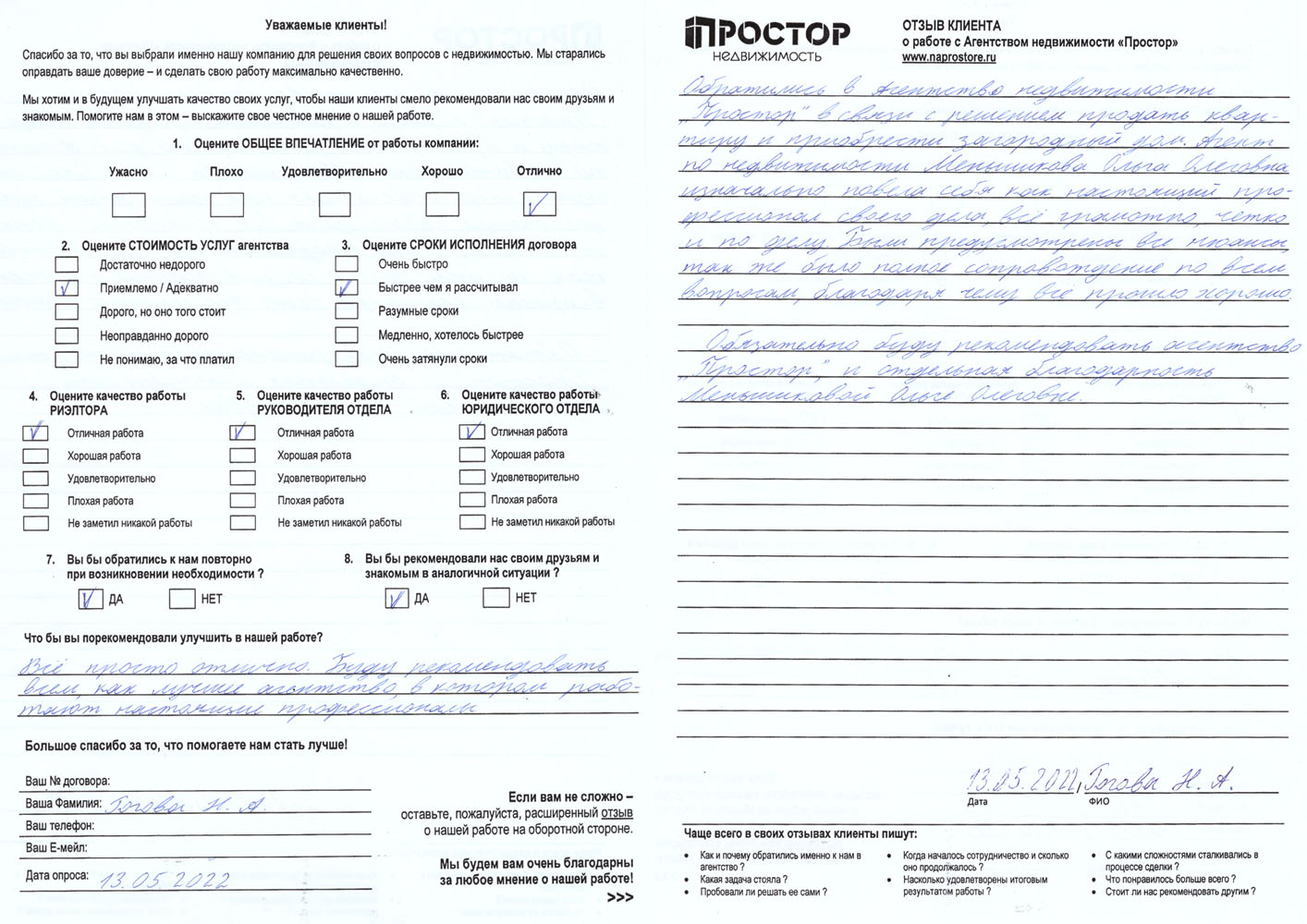 13.05.2022 Офис Павелецкий Меньшикова Ольга