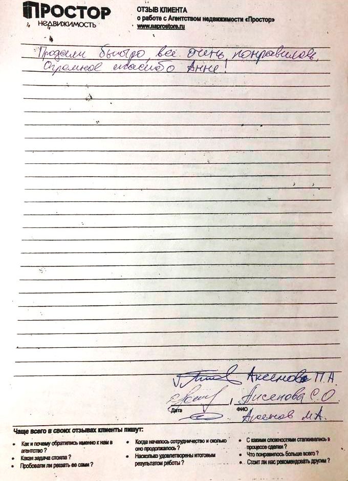 Продали быстро, все очень понравилось. Огромное спасибо Анне!