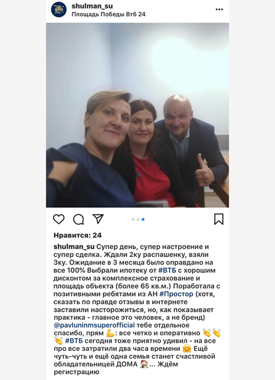 Супер день, супер настроение и супер сделка. Ждали 2-ку распашонку, взяли 3-ку. Ожидание в 3 месяца было оправдано на все 100%. Выбрали ипотеку от ВТБ с хорошим дисконтом за комплексное страхование и площадь объекта (более 65 кв.м.). Поработала с позитивными ребятами из АН Простор (хотя сказать по правде отзывы в интернете заставили насторожиться, но, как показывает практика - главное это человек а не бренд). Павлунин Михаил - тебе отдельное спасибо, прям: все четко и оперативно. ВТБ сегодня тоже приятно удивил - на все про все затратили два часа времени. Еще чуть-чуть и еще одна семья станет счастливой обладательницей дома! Ждем регистрацию!