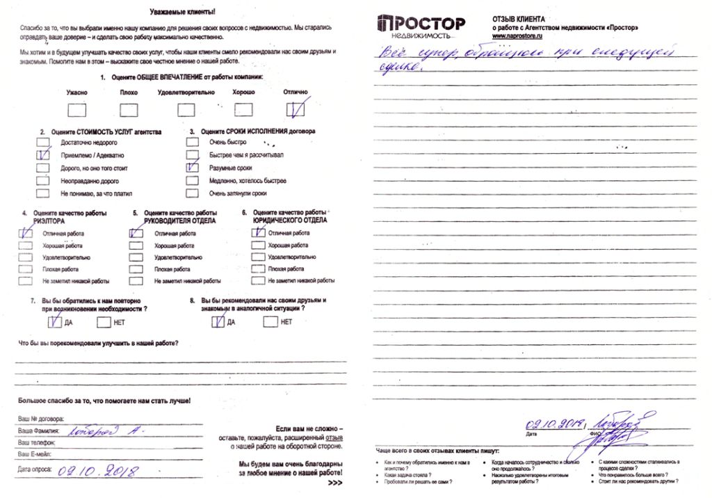 Все супер, обращусь при следующей сделке.