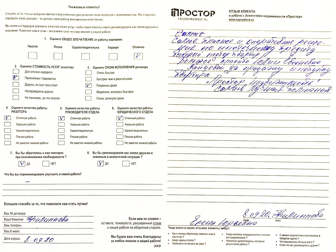 Я, клиент а/н "Простор" Королев Дмитрий Андреевич выражаю глубокую благодарность руководителю отдела Давыдову Денису и Ланцевой Ирине за профессионализм деятельности, компетентность и грамотность, тактичность в общении и проведении сделки. Настоятельно рекомендую и буду рекомендовать сотрудников новым клиентам. С глубоким уважением к Вам Королев Д.А.
